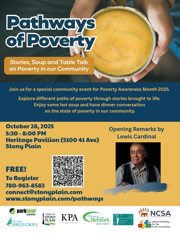 Join us for a special community event for Poverty Awareness Month 2025. Explore different paths of poverty through stories brought to life. Enjoy some hot soup and have dinner conversation on the state of poverty in our community. Together we can better understand poverty in our community.
